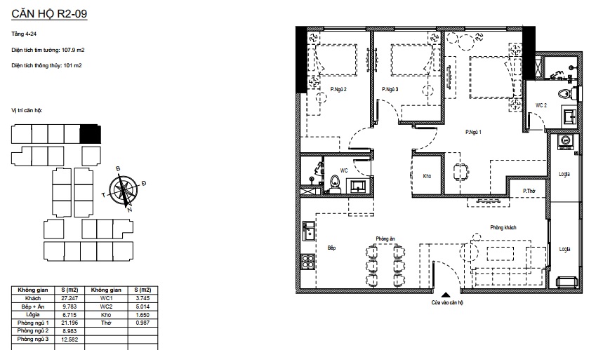 Căn hộ 3 phòng ngủ 101m2 dự án Florence Mỹ Đình